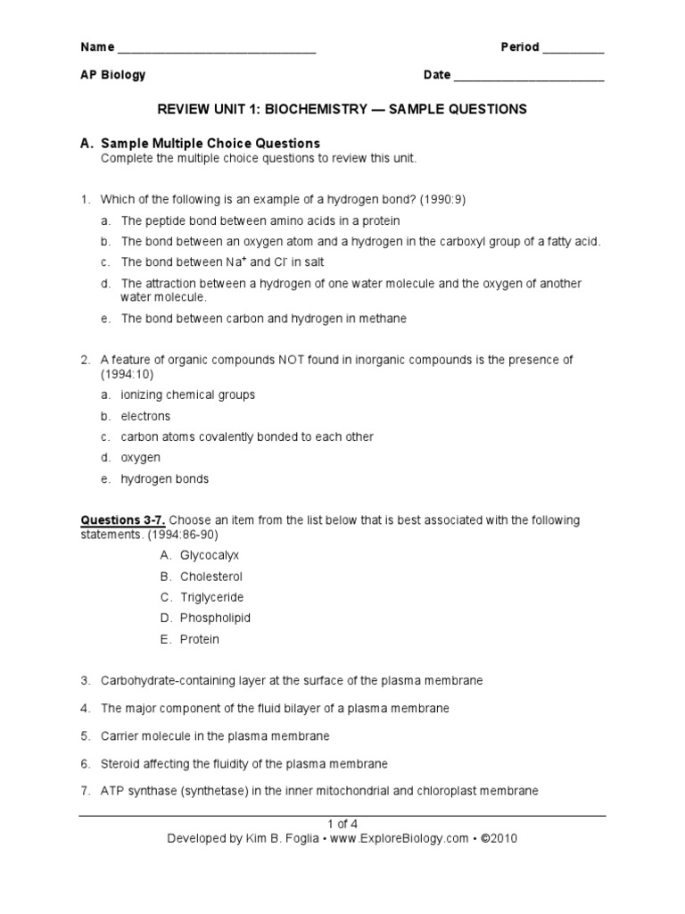 AP Biology Midterm Exam Review Questions
