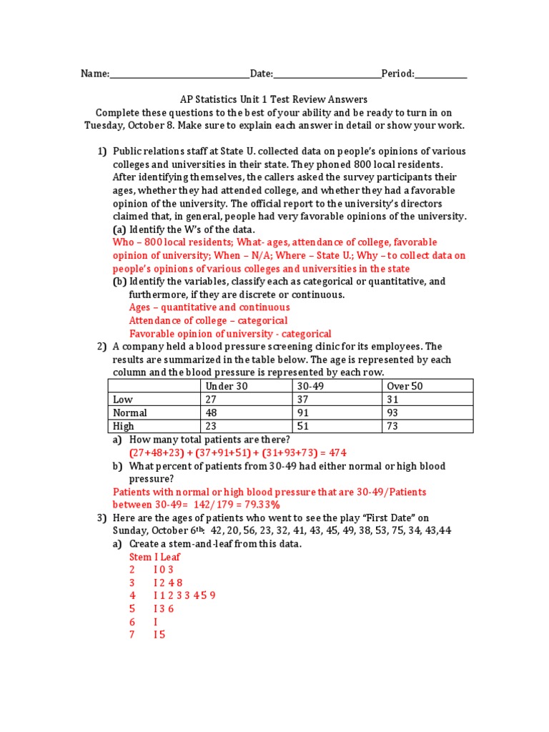 Ap Statistics Unit 1 Review