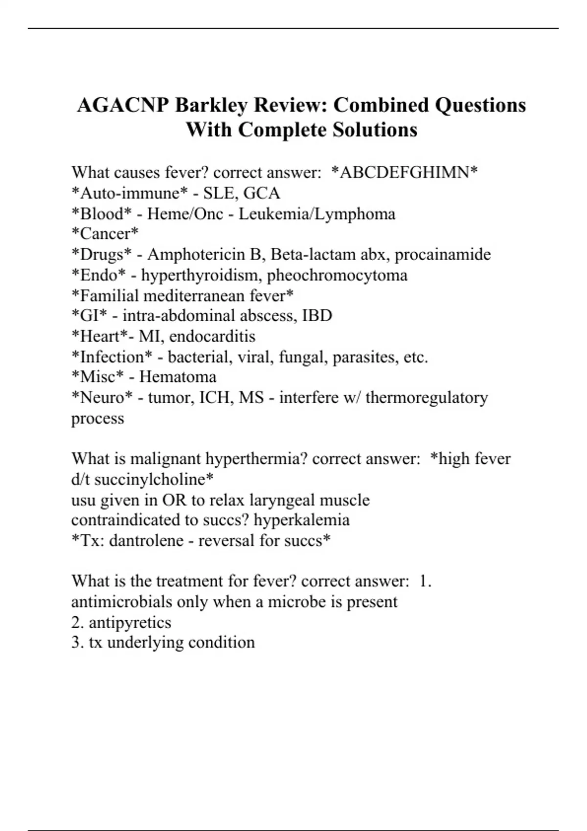 AGACNP Barkley Review Combined Questions With Complete Solutions
