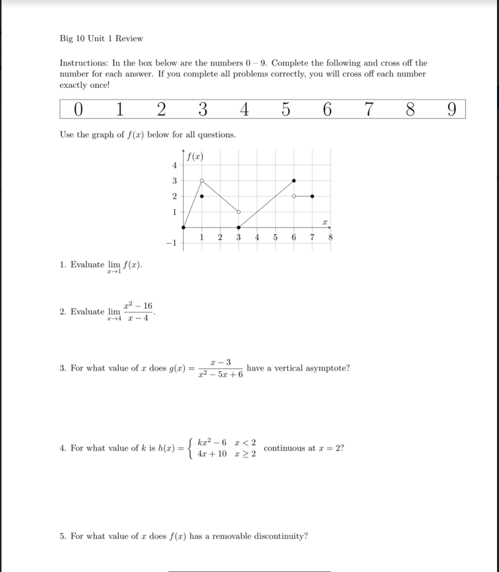 Solved Big 10 Unit 1 Review Instructions In the box below