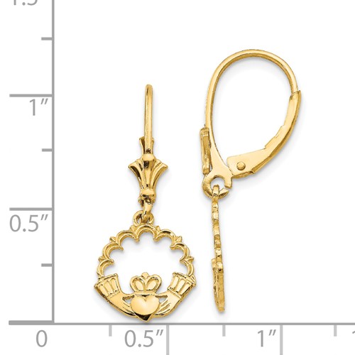 14k Yellow Gold Claddagh Leverback Earrings K4525 Joy Jewelers