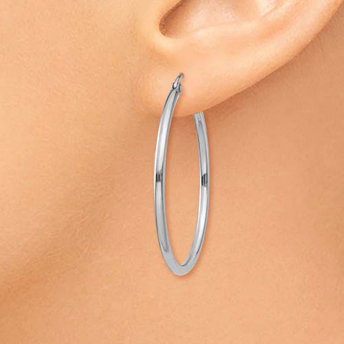 14k White Gold 1 3/8in Round Hoop Earrings 2mm T825 Joy Jewelers
