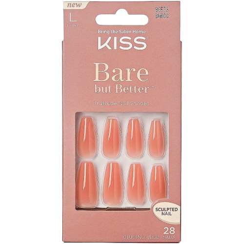 KISS Bare but Better Sculpted Nude Fake Nails, Nude Glow, 28 Count